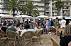 På stranden har Einar Film inntatt et bord, og produksjonsleder Martine Skipperud er klar for en festlig torsdag.